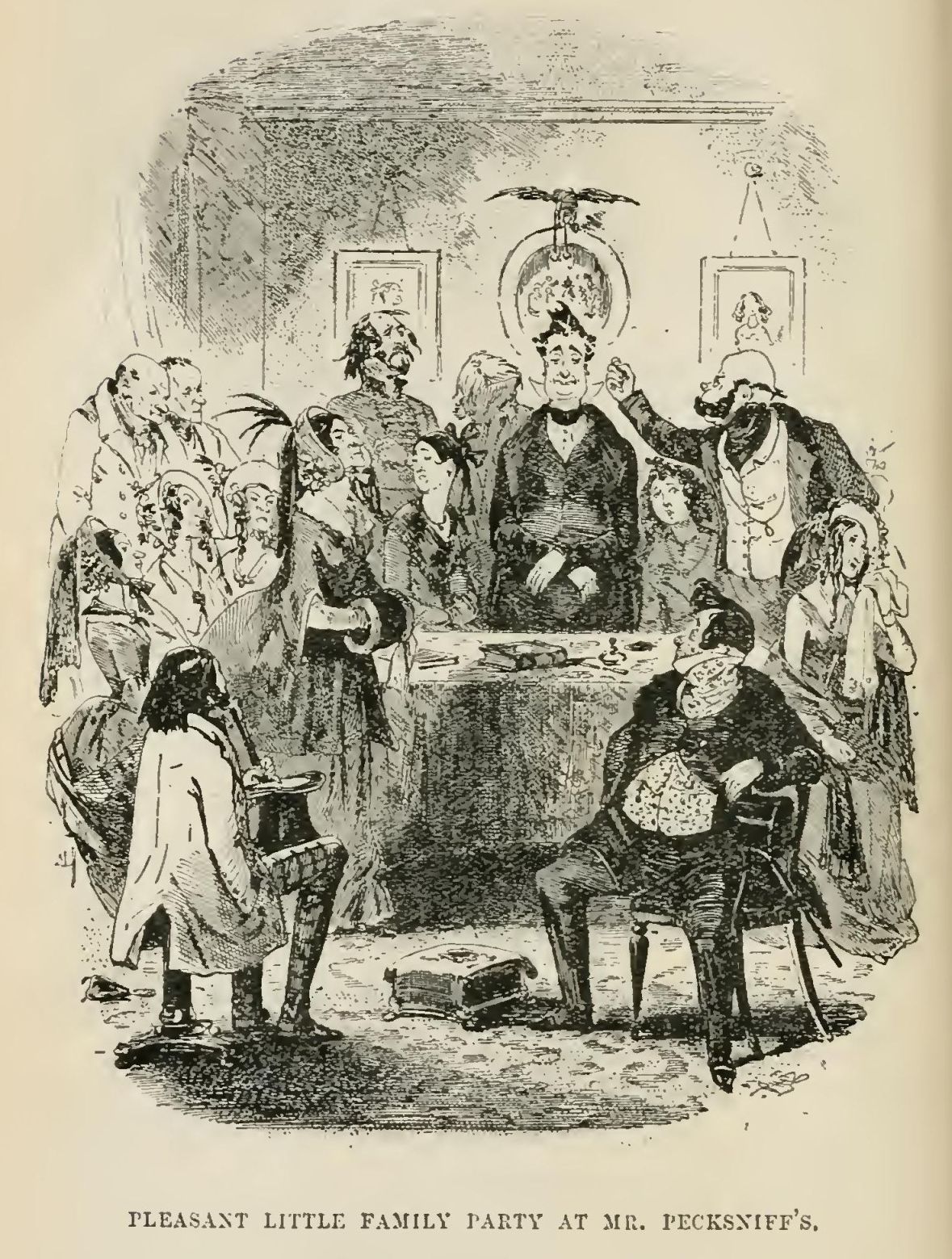 ‘Don’t say we get drunk, Pa,’ urged the eldest Miss Pecksniff.