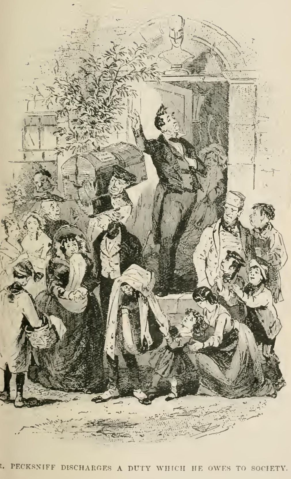 This history having, to its own perfect satisfaction, (and, consequently, to the full contentment of all its readers,) proved the Chuzzlewits to have had an origin, and to have been at one time or other of an importance which cannot fail to render them highly improving and acceptable acquaintance to all right-minded individuals, may now proceed in earnest with its task. And having shown that they must have had, by reason of their ancient birth, a pretty large share in the foundation and increase of the human family, it will one day become its province to submit, that such of its members as shall be introduced in these pages, have still many counterparts and prototypes in the Great World about us. At present it contents itself with remarking, in a general way, on this head: Firstly, that it may be safely asserted, and yet without implying any direct participation in the Manboddo doctrine touching the probability of the human race having once been monkeys, that men do play very strange and extraordinary tricks. Secondly, and yet without trenching on the Blumenbach theory as to the descendants of Adam having a vast number of qualities which belong more particularly to swine than to any other class of animals in the creation, that some men certainly are remarkable for taking uncommon good care of themselves.
