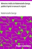 Mémoires inédits de Mademoiselle George, publiés d'après le manuscrit original (French)